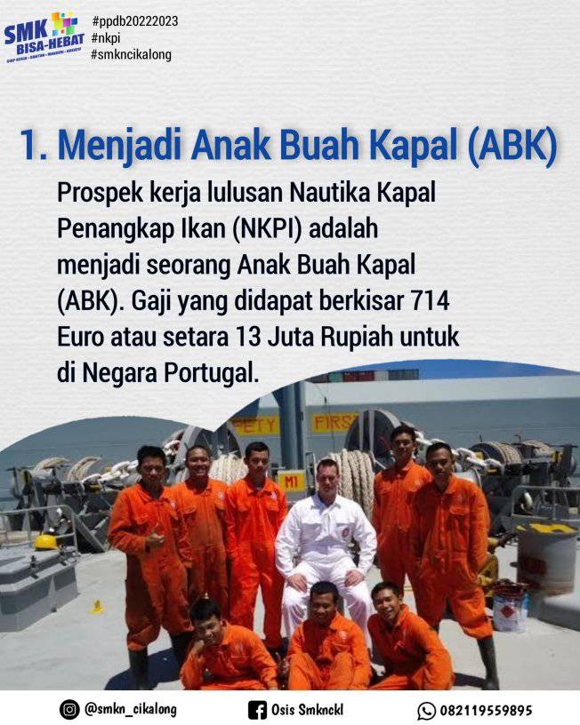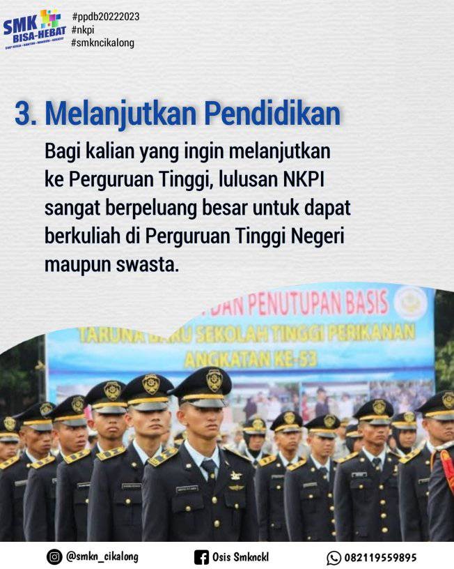 Tanpa dasar pendidikan yang mumpuni, tidak akan terwujud Indonesia Sebagai Poros Maritim Dunia. Kuasai keilmuan kelautan dan perikanan bersama NKPI SMK Negeri Cikalong Kabupaten Tasikmalaya.